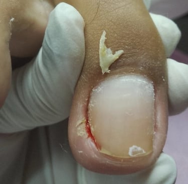 CAUSADA POR CORTE ERRADO DA UNHA,CORTE COM ALICATE NA PELE,CAUDAS HEREDITÁRIA,CALO SOBUNGUEAL.